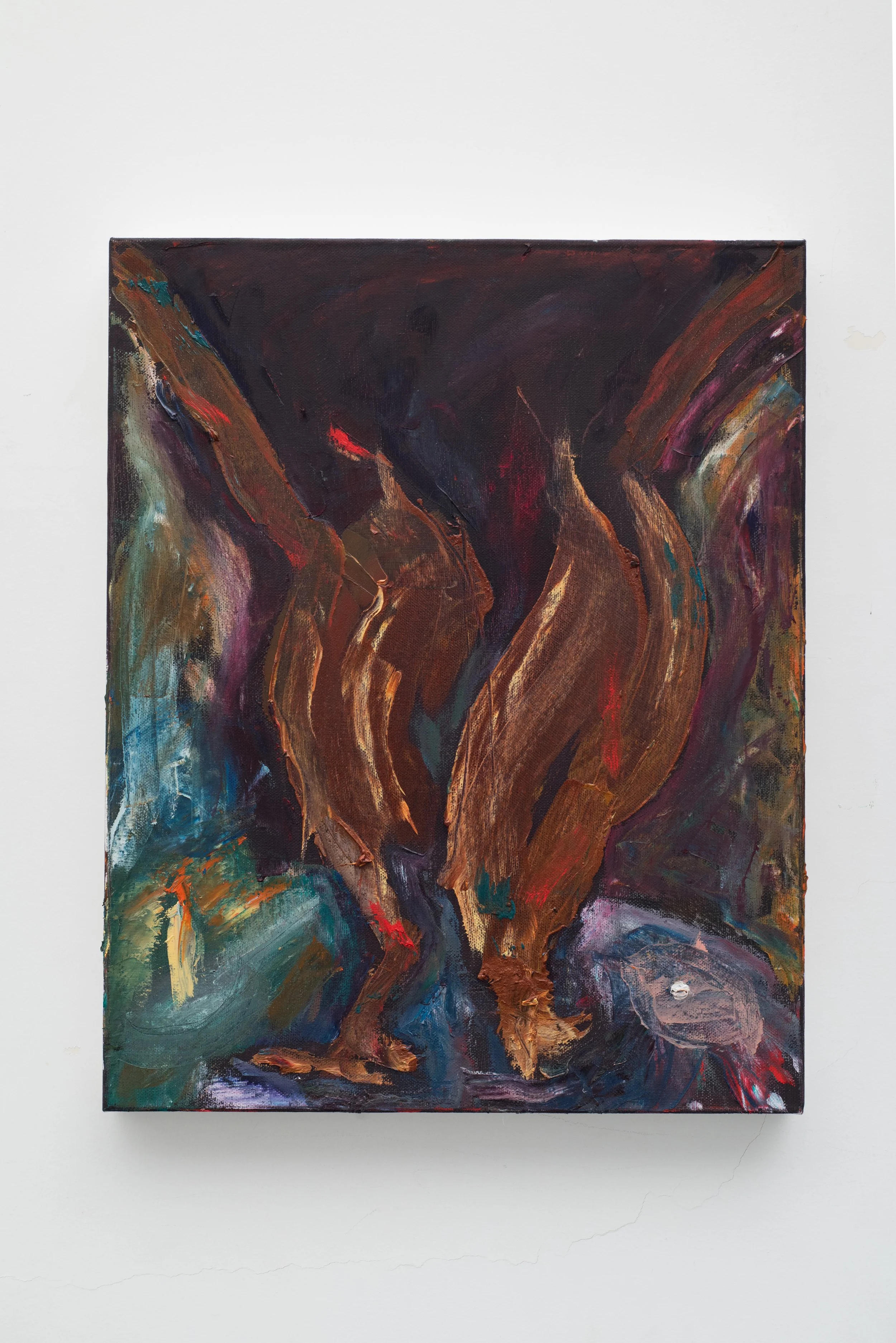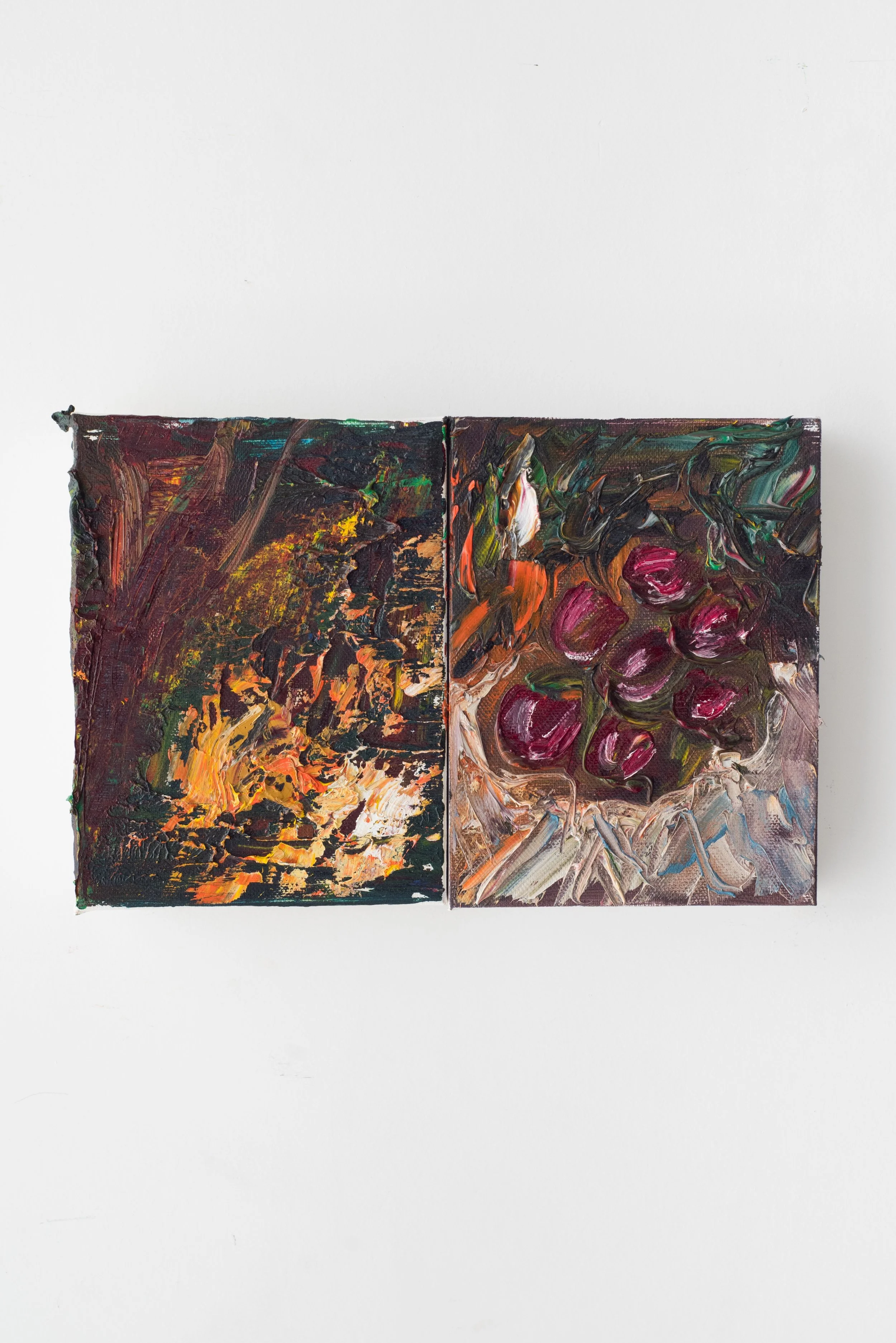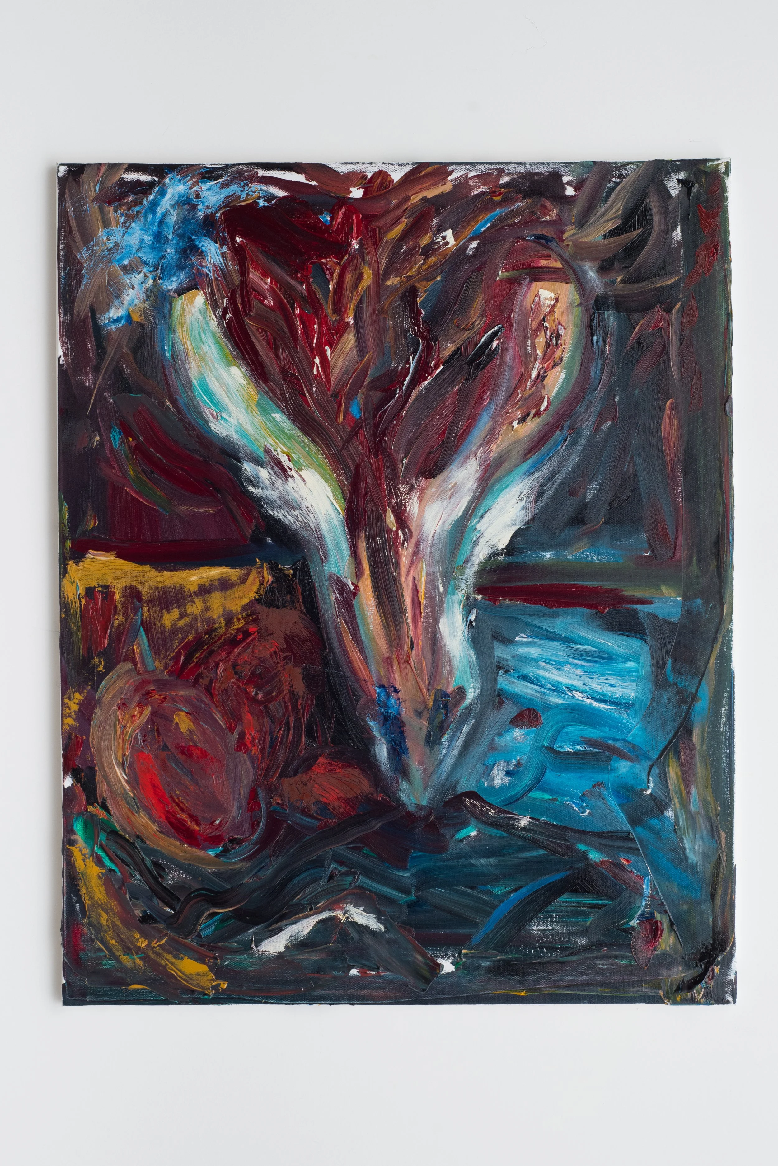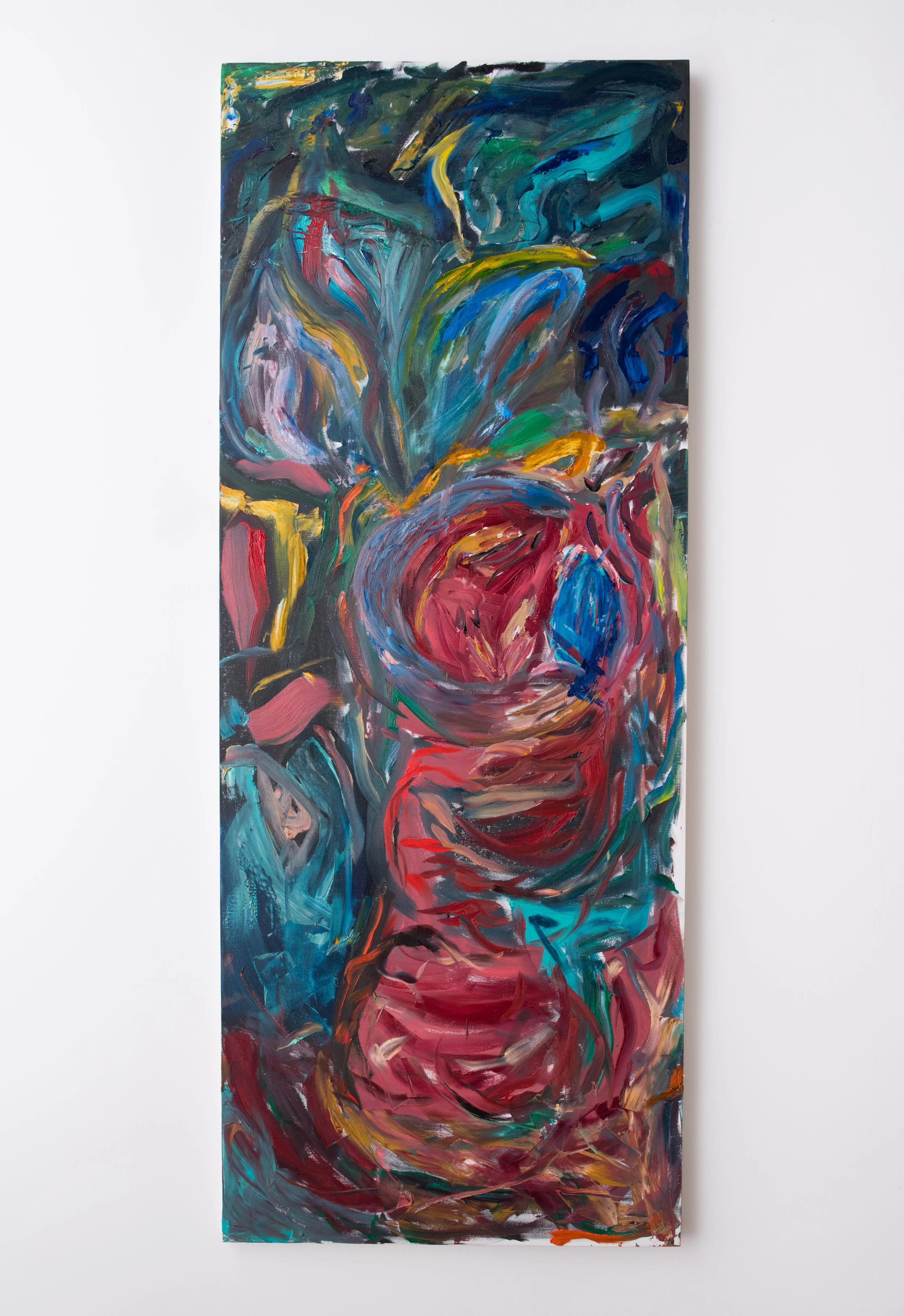 Pellehn Blum’s paintings are based on his most personal writing, usually poems, which are to him almost like a diary of fleeting thoughts and preoccupations. Each painting illustrates a line or verse from a poem, Pellehn Blum wrote beforehand. The works here are grouped according to the poem they belong to, being Nature Morte with Lobster and his wife Pearls, the only one fully illustrated to date.