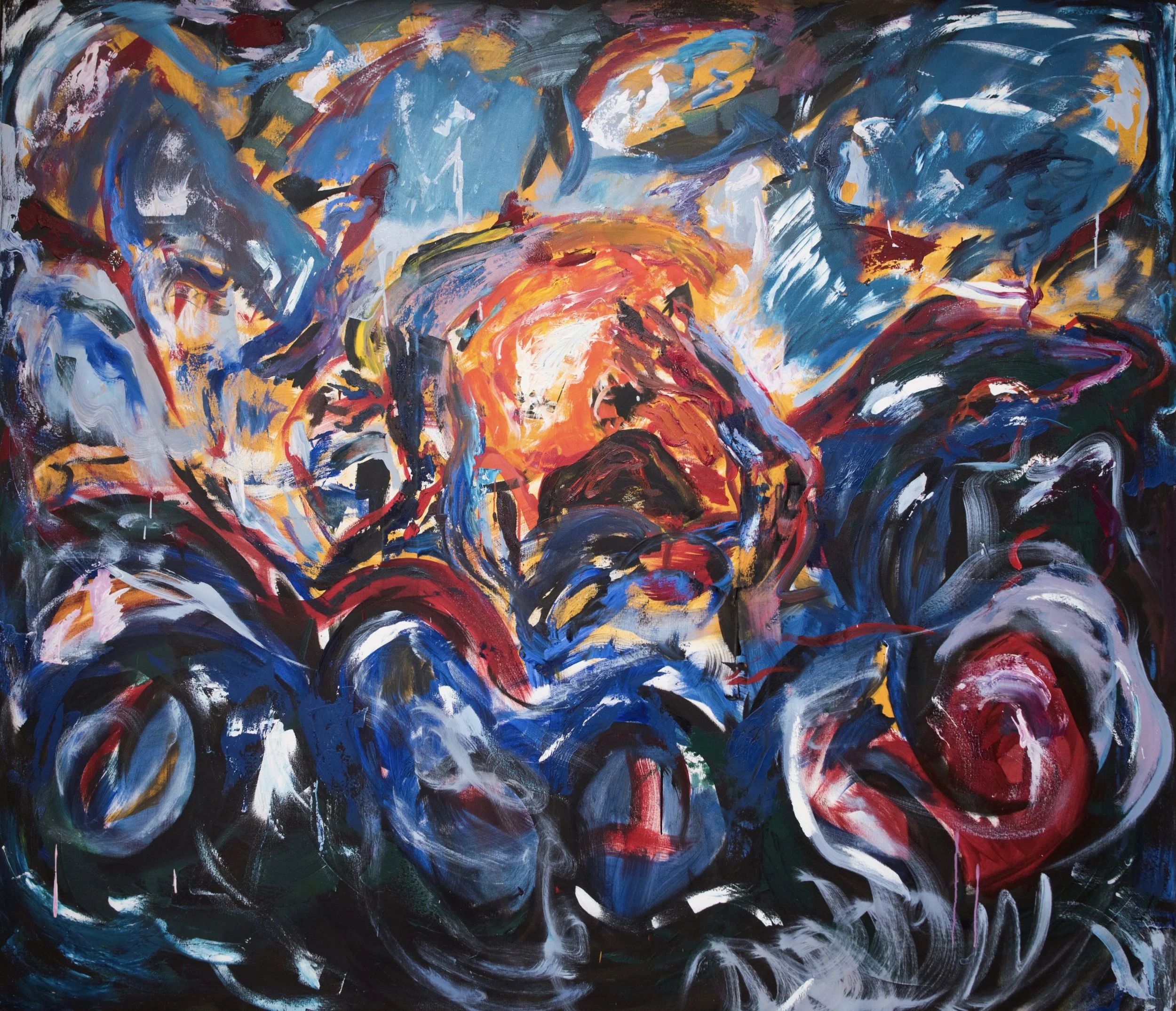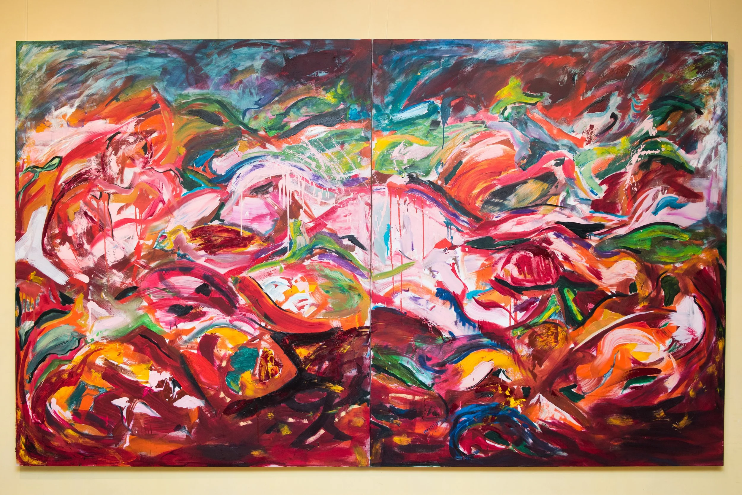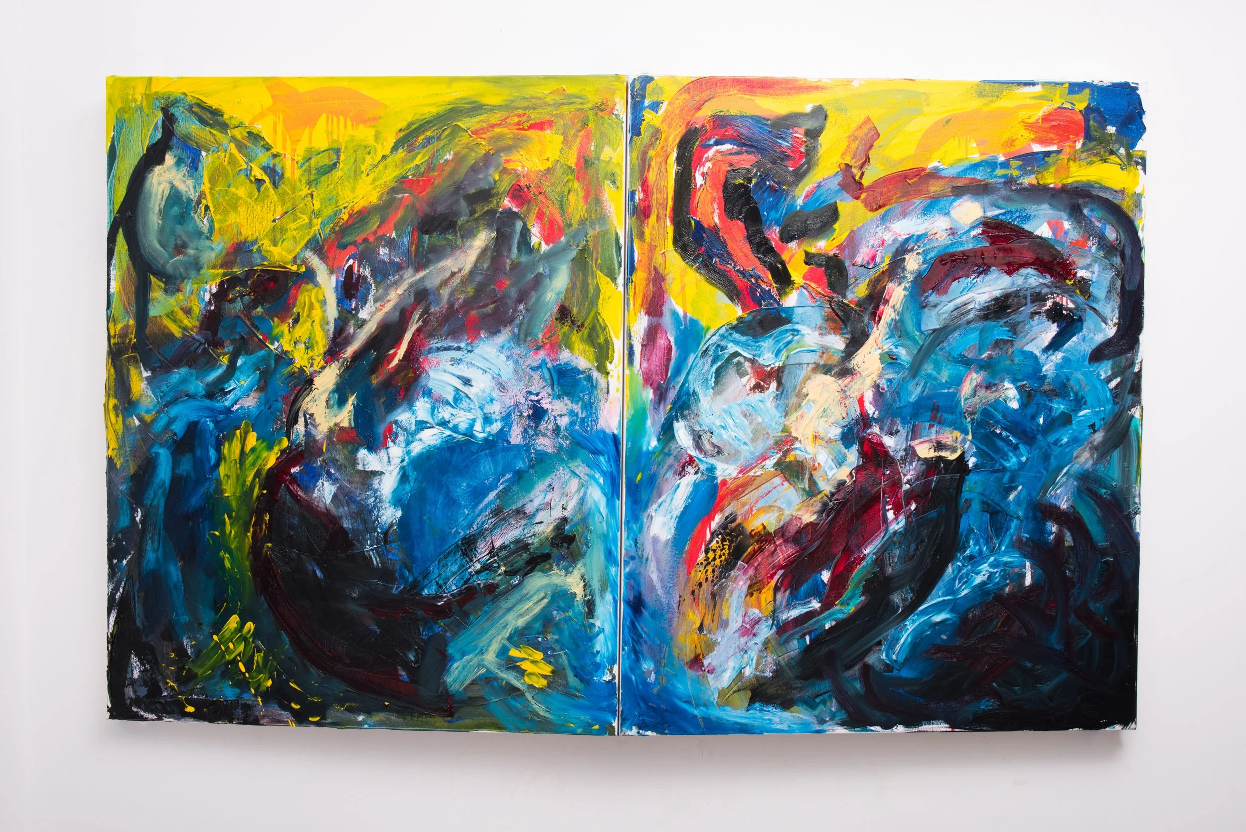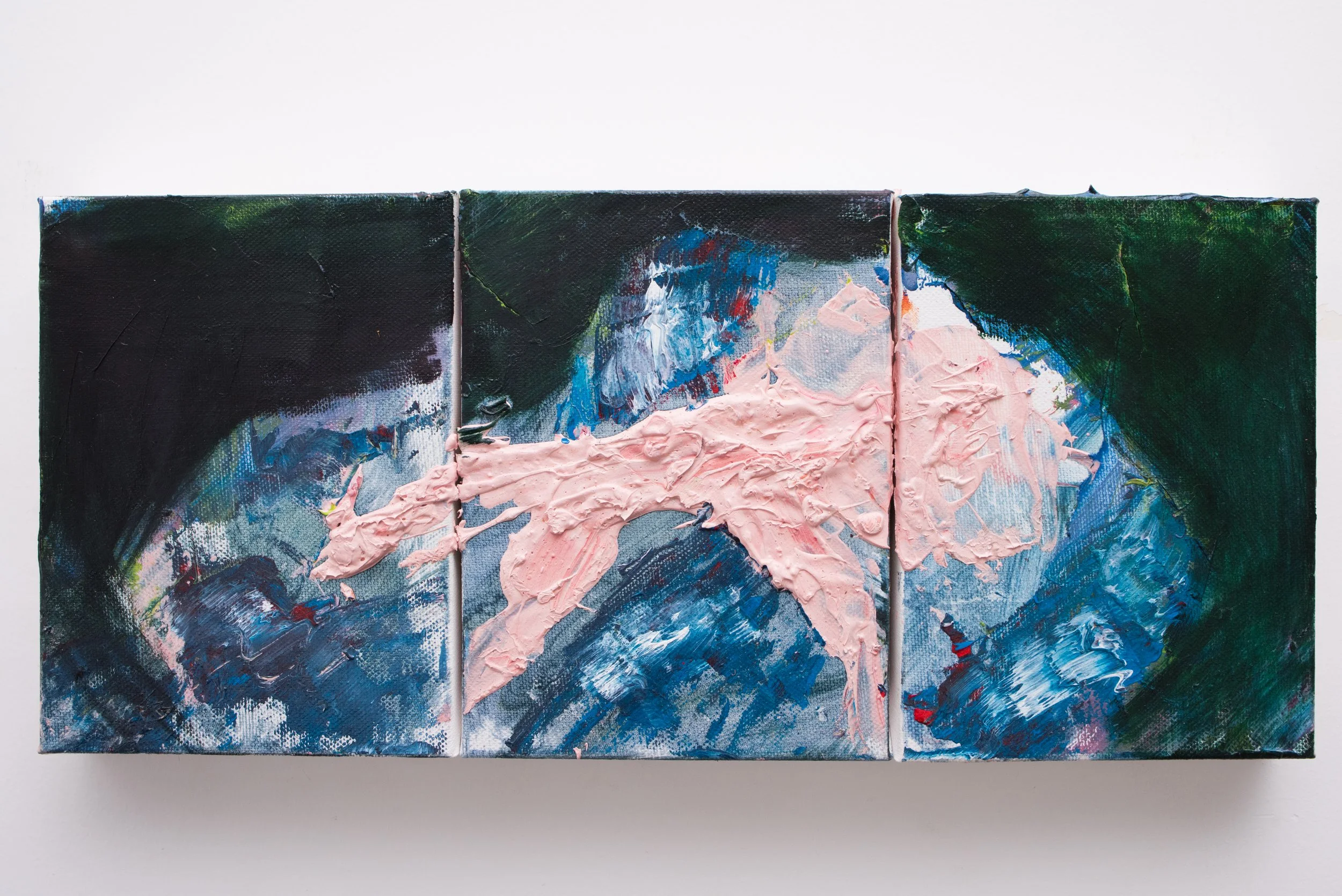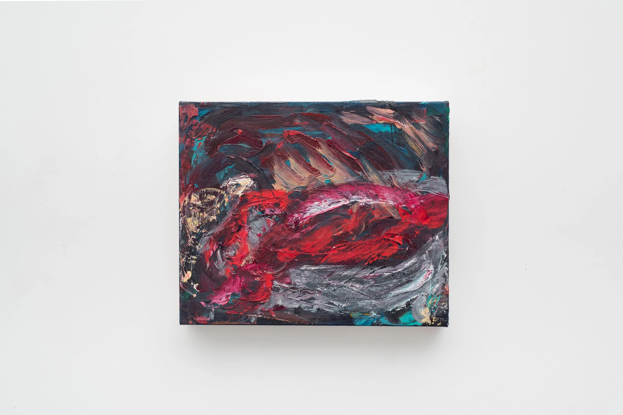 Pellehn Blum’s paintings are based on his most personal writing, usually poems, which are to him almost like a diary of fleeting thoughts and preoccupations. Each painting illustrates a line or verse from a poem, Pellehn Blum wrote beforehand. The works here are grouped according to the poem they belong to, being Nature Morte with Lobster and his wife Pearls, the only one fully illustrated to date.